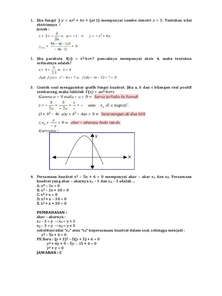 Yang namanya grafik fungsi kuadrat adalah grafik dengan bentuk contoh soal graf. Coba kamu perhatikan grafik berikut: